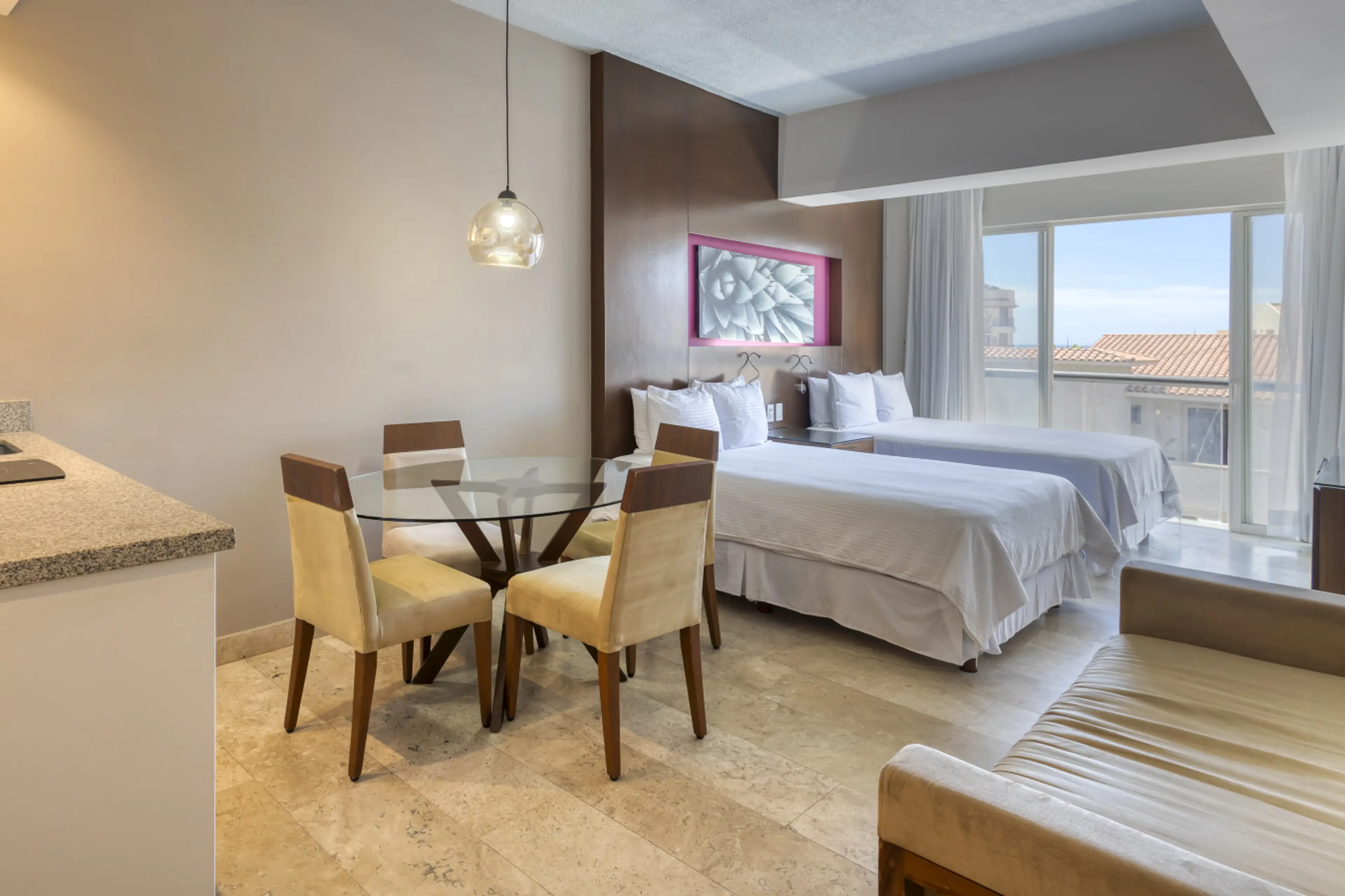Despierta con vistas panorámicas al mar y a la ciudad en este luminoso departamento de 2 habitaciones, 2 baños y 2 cocinetas, en el 1er piso, a solo 300 metros de la playa. Estarás a minutos del centro y justo frente a la carretera transpeninsular, con acceso rápido a toda la zona. En la planta baj...
